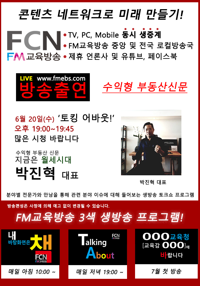 지금은 월세시대 박진혁 대표가 FM교육방송 3색 프로그램 중 하나인 ''토킹 어바웃''에 출연한다.