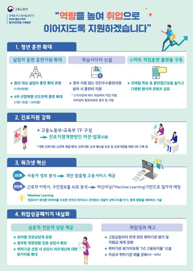 이를 반영하여 전국 17개 청년센터를 설치해서 취업상담과 함께 스터디룸, 휴식공간 등 청년공간을 제공할 계획이다.