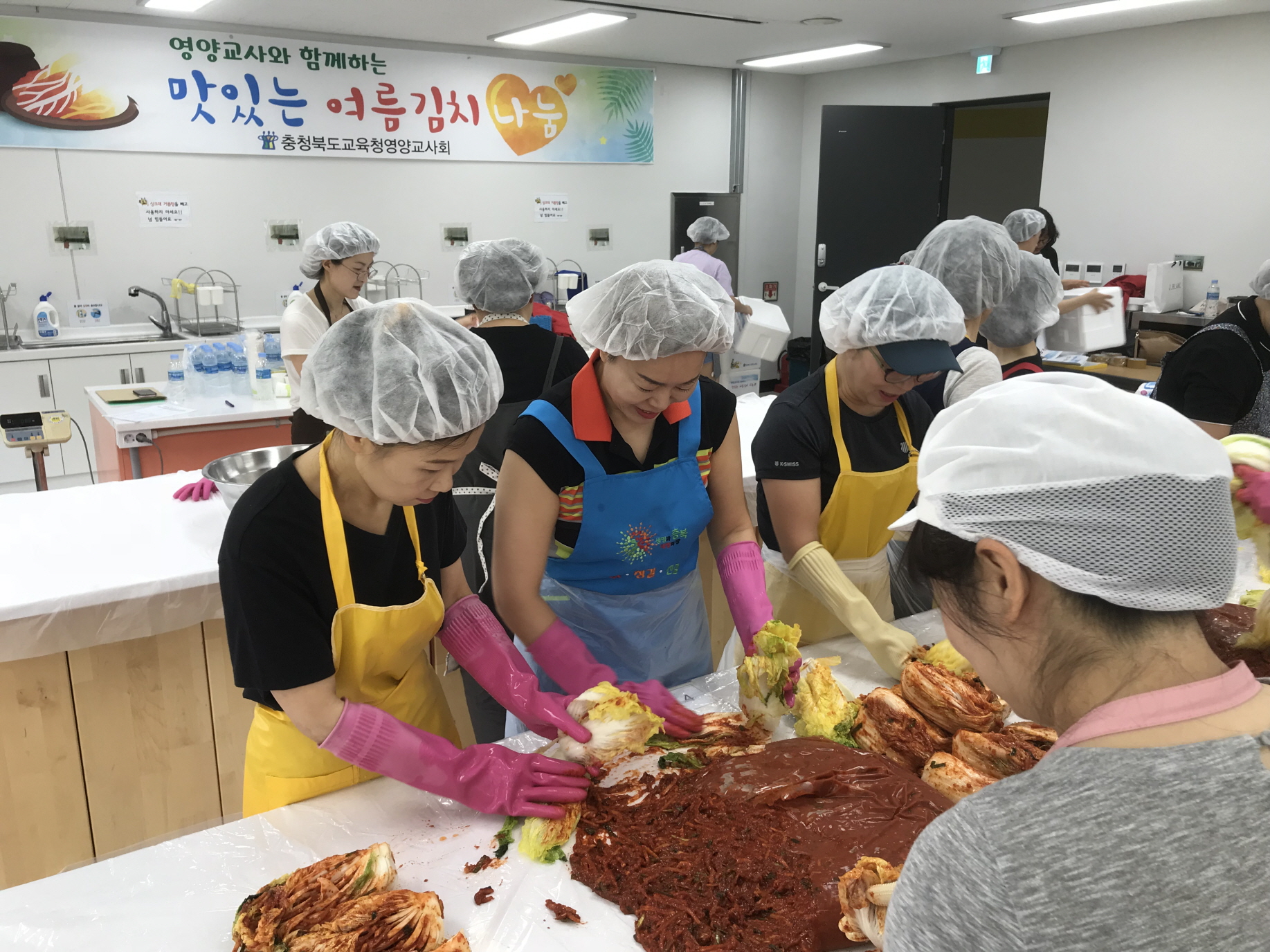 충청북도교육청 소속 충북영양교사회(회장 오은정)가 23일(토) 오전10시 청주시 지북동 충북미래여성플라자에 모여 여름 김장 김치 나눔 봉사를 실시했다.