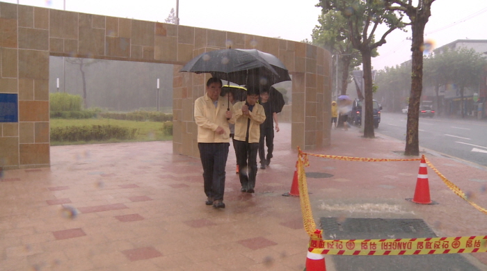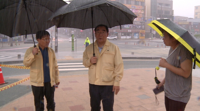 이승훈 청주시장은 호우주의보가 발효된 이날 새벽부터 우수저류시설 등 시 전역을 돌며 피해 예방을 위해 힘썼다.